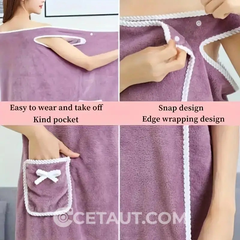 【Bequemes Band】: Die tragbare Badehülle verwendet ein Banddesign, hält Ihr Handtuch sicher an Ort und Stelle und verleiht nach der Dusche einen Hauch von Eleganz.